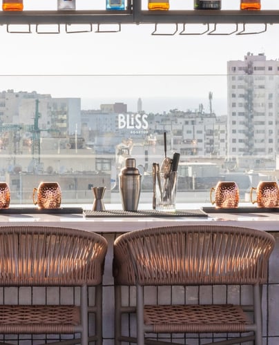 Bliss Rooftop in Casablanca offers a stunning panoramic view of the city, making it the perfect spot for a relaxed evening or a special occasion. The chic and modern ambiance is complemented by inventive cocktails, ideal for sunset moments. While the service is friendly, some guests have noted occasional delays and inconsistency in the food quality, with a limited menu. The music, although lively, can be too loud for easy conversation. Despite these minor drawbacks, Bliss Rooftop remains a popular destination for those looking to enjoy a beautiful view and refreshing drinks in a stylish setting.