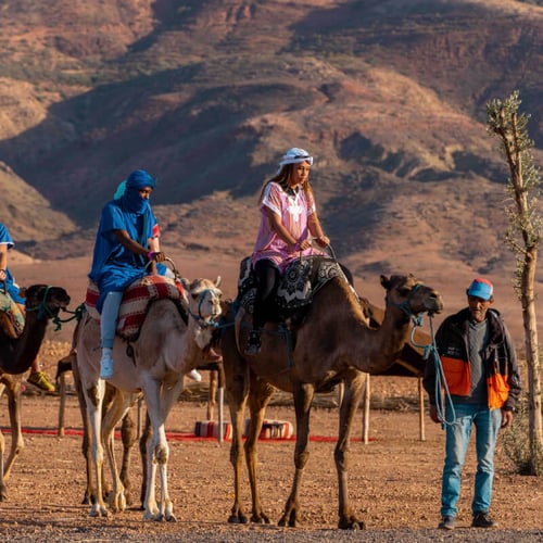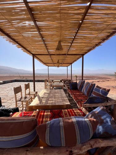 Nestled near the Agafay Desert, the camp is located on the other side of Agafay, 7km from the Lalla Takerkoust Dam. The landscape is stunningly desert-like, with breathtaking reliefs almost identical to those of Agafay. The camp blends luxury with authenticity, offering traditional Moroccan cuisine crafted from fresh, local ingredients.