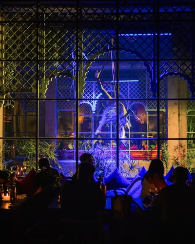 Jad Mahal is a vibrant and iconic destination in Marrakech's upscale Hivernage district, blending fine dining, a stylish bar, and dazzling live performances. This enchanting venue invites you into a world of elegance and spectacle, where Moroccan, Thai, and French culinary traditions come together in an inventive menu crafted by a talented chef.