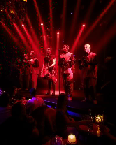Jad Mahal is a vibrant and iconic destination in Marrakech's upscale Hivernage district, blending fine dining, a stylish bar, and dazzling live performances. This enchanting venue invites you into a world of elegance and spectacle, where Moroccan, Thai, and French culinary traditions come together in an inventive menu crafted by a talented chef.